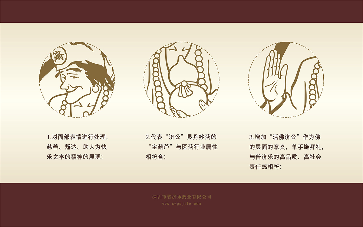 創(chuàng)意闡述:以濟(jì)公形象作為企業(yè)品牌,與普濟(jì)樂藥業(yè)核心理念——"普濟(jì)天下以致樂"完美融合。